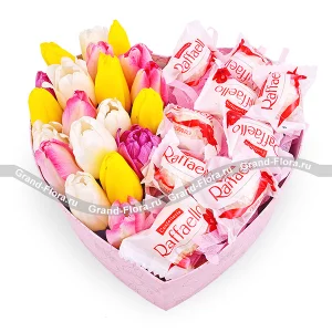 Красота в тебе - коробка с тюльпанами и раффаэлло